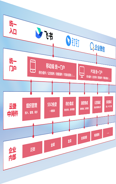 对协作平台提供支持服务,,,支持企业应用与协作平台对接,,,,包含组织同步、、、消息集成、、、待办集成等。。。支持目前主流的协作平台:钉钉、、、企微和飞书。。